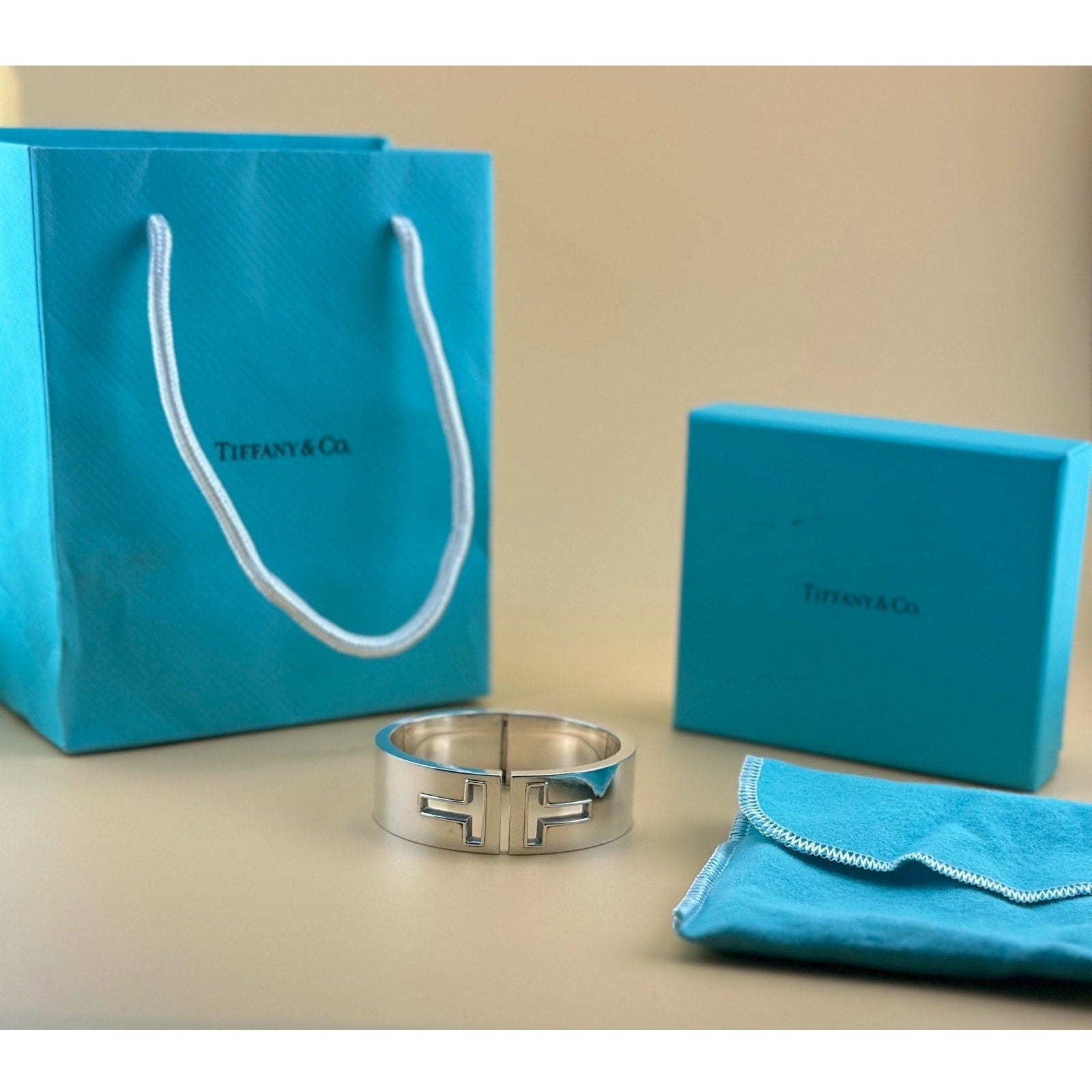 925 Tiffany & Co. T Cut Out Sterling Silver Cuff Bracelet – Signed w/ Box & Bags