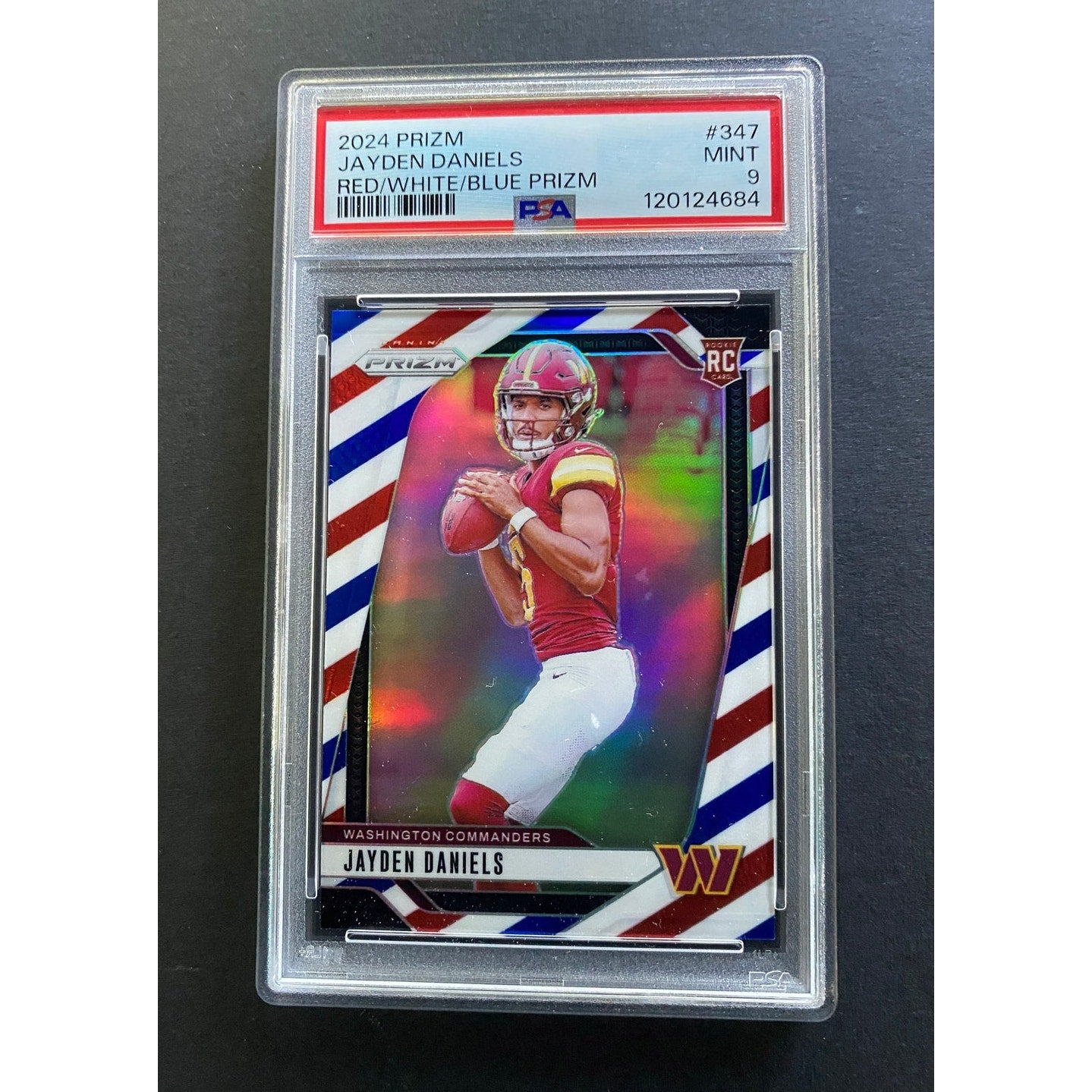 Jayden Daniels 2024 Prizm 347 Commanders Red White Blue PSA 9