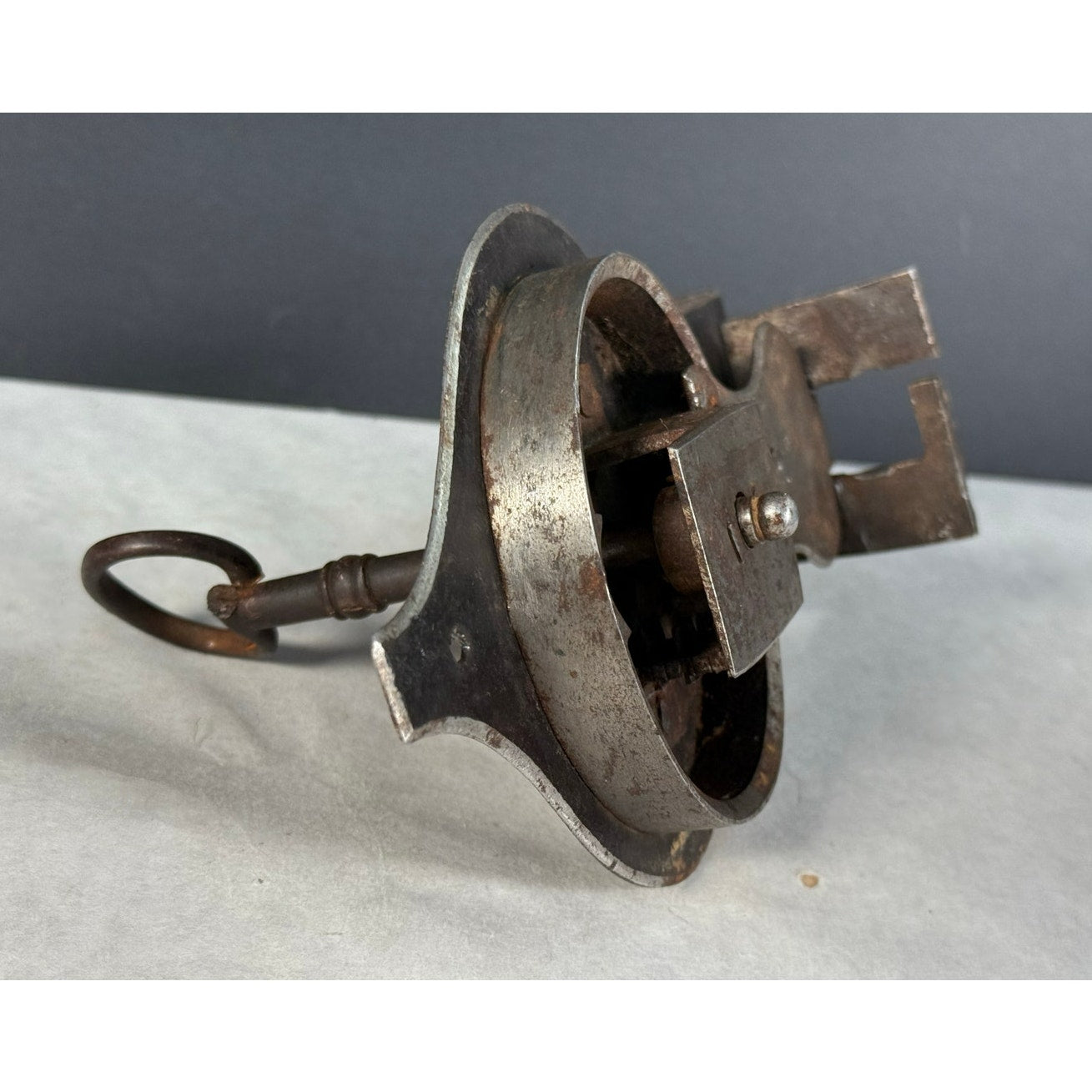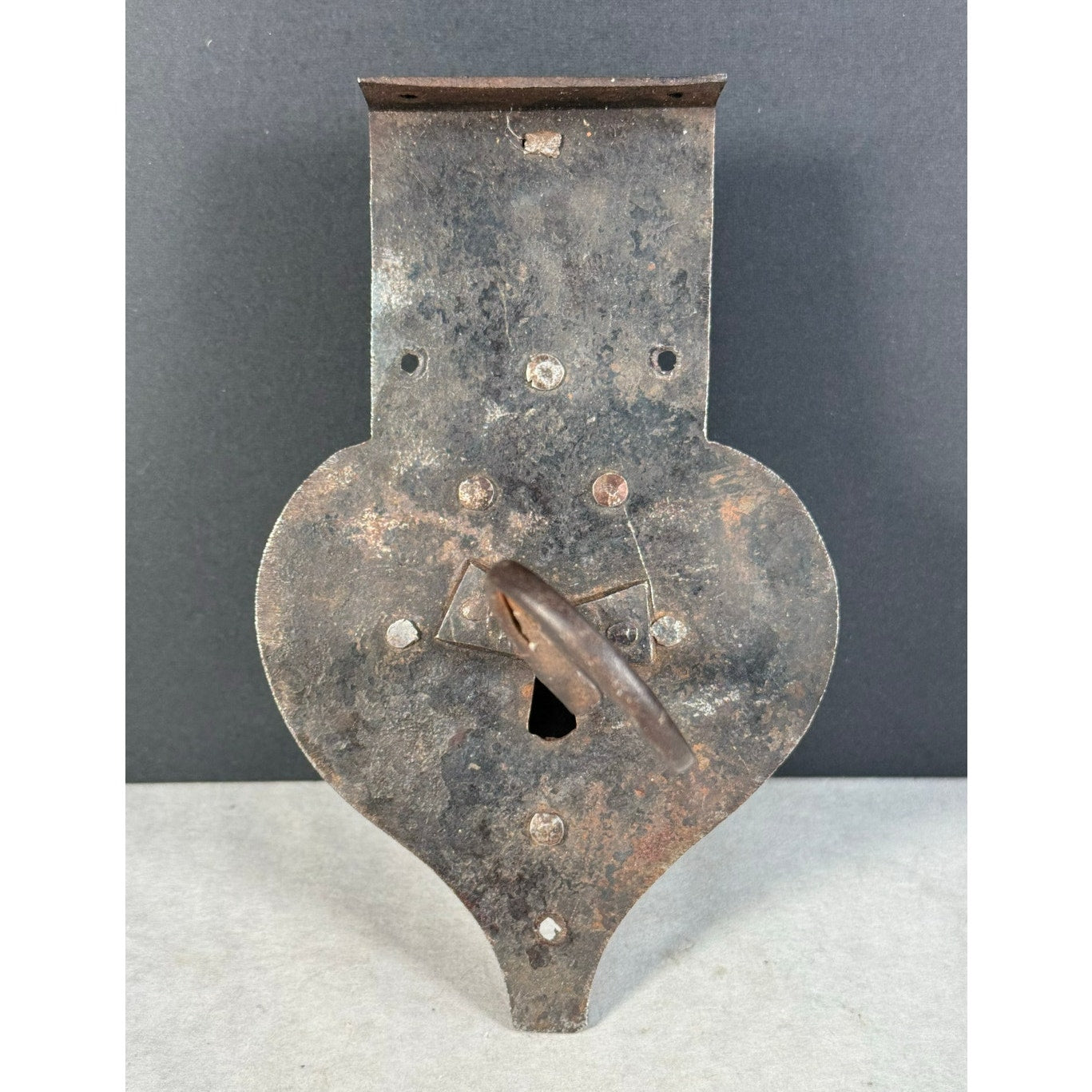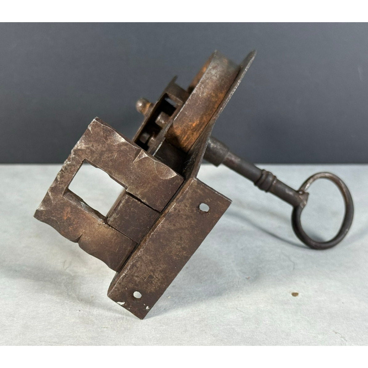 Moravian Hammered Metal Lock with Key Wrought Iron Chest Grab Lock