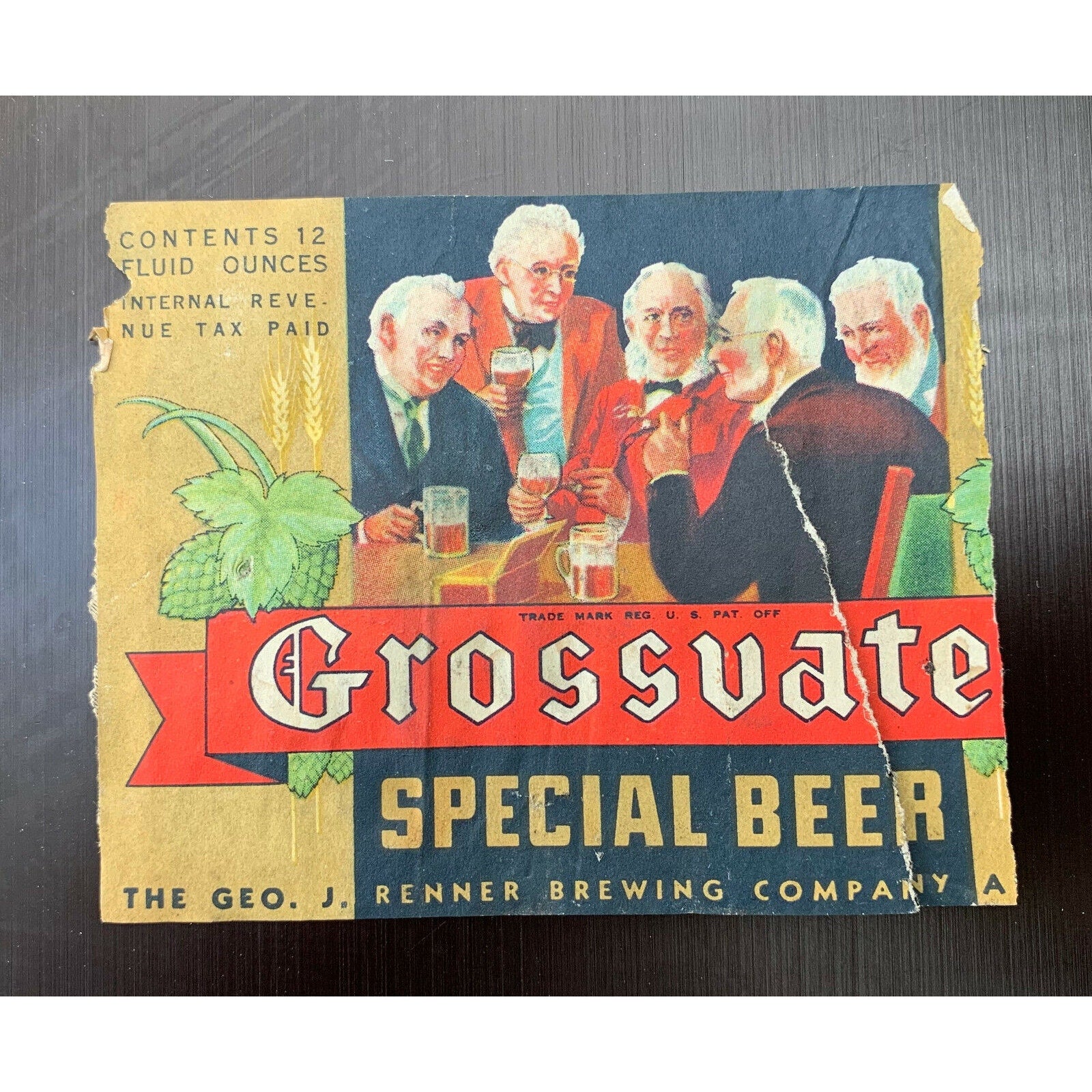 RARE Grossvate Special Beer Label IRTP 1930s – Geo. J. Renner Brewing Co. Akron