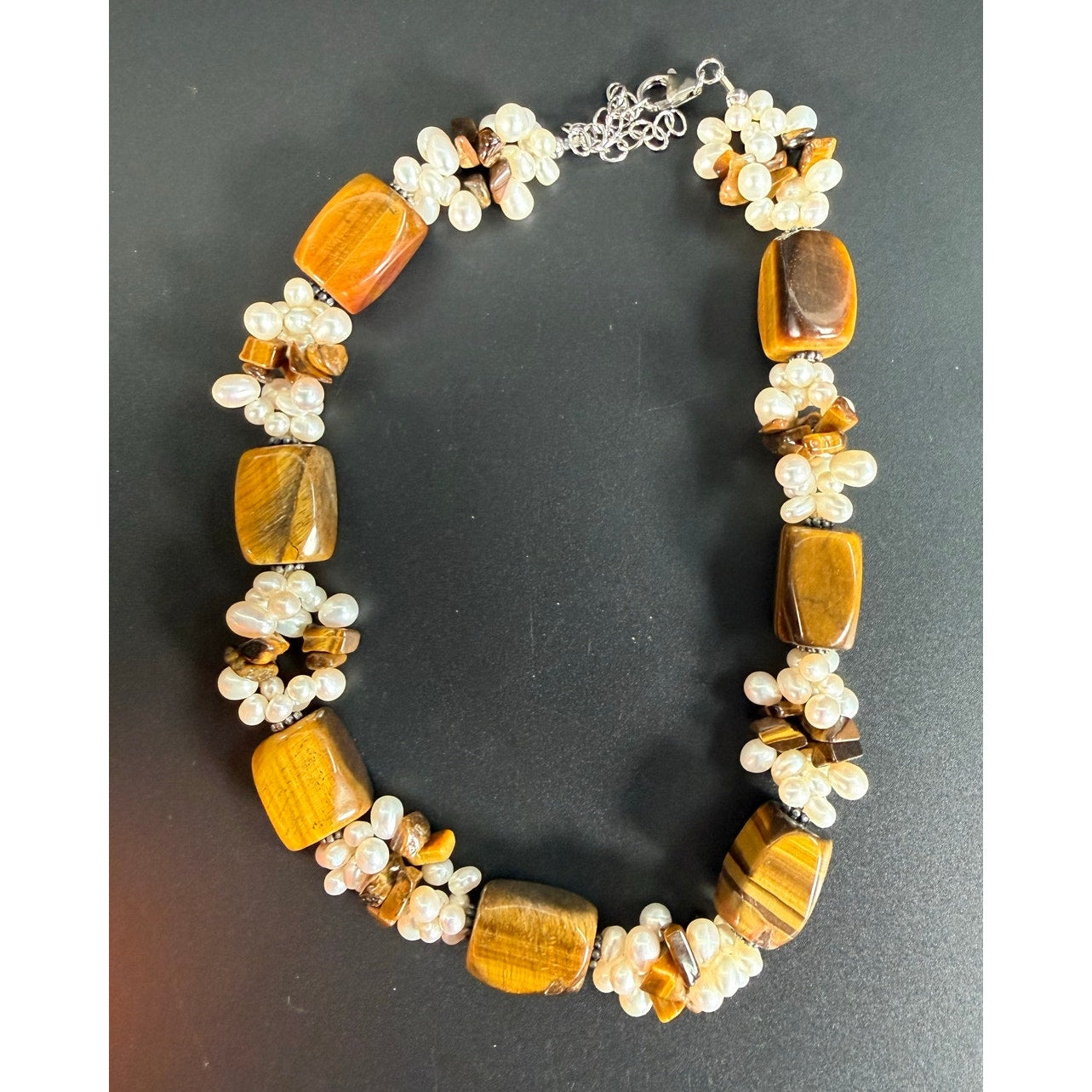 Lovely Ross Simons tiger eye and pearl cluster necklace, a chunky statement piece with sterling silver fastener. Comes with a... Read more