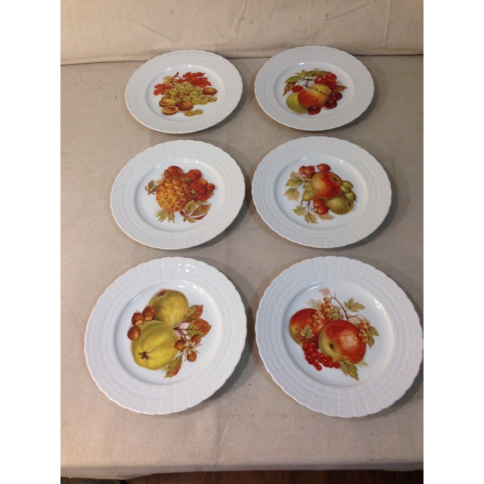 Brand: Hutschenreuther / West GermanySet of 6 fruit plates, each with a unique patternScalloped edgesAll plates retain original stickersIncludes original... Read more