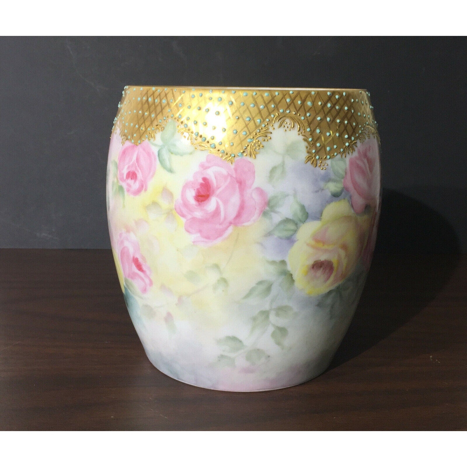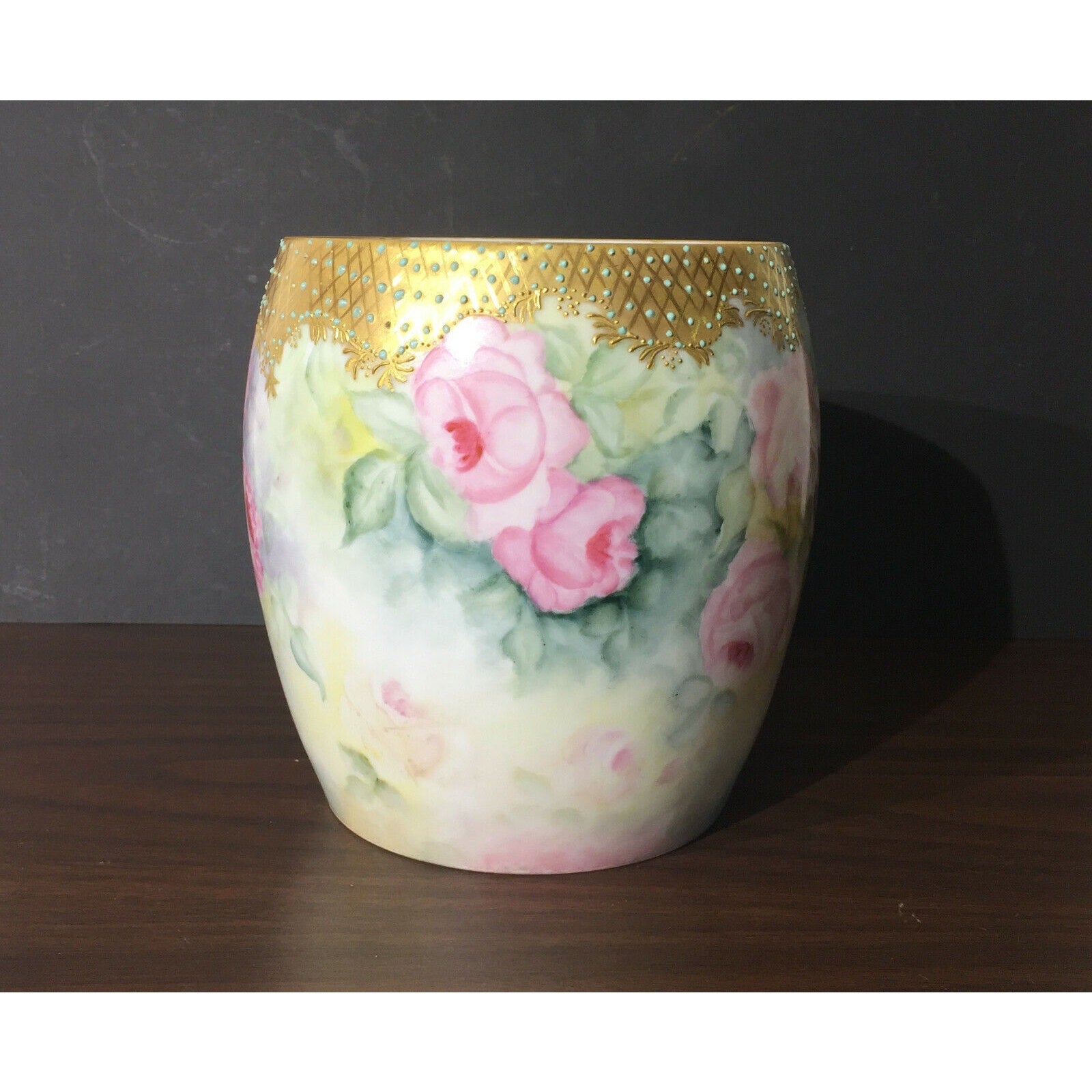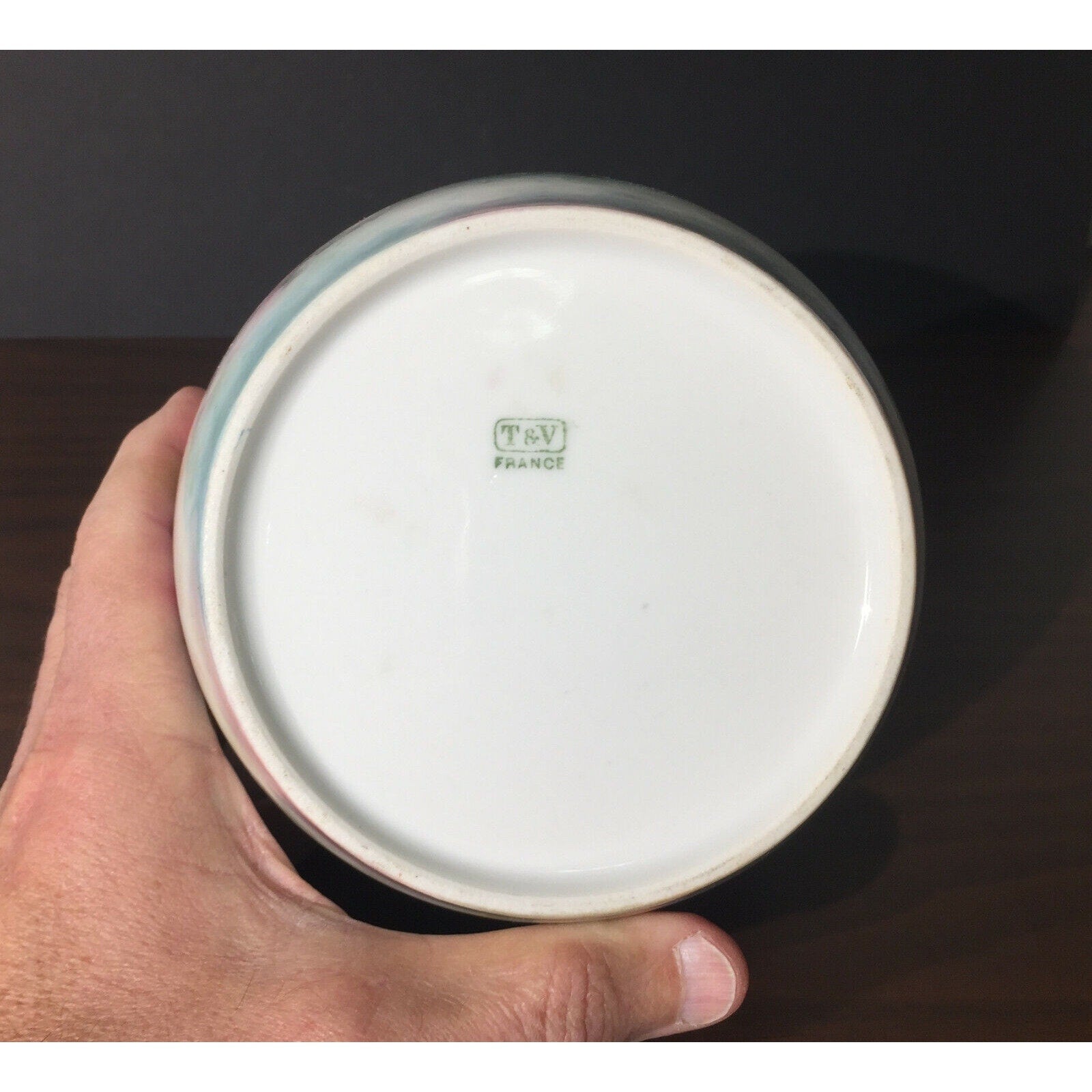 Elegant T&V Limoges France hand-painted porcelain bowl or vase, dating to the early 1900s.Features vibrant floral design and gold trim... Read more