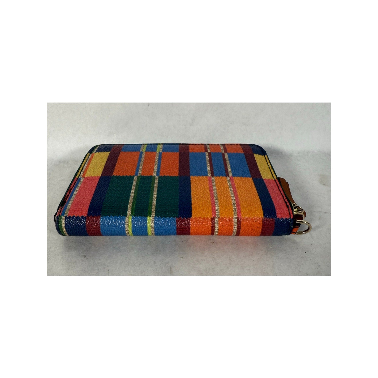 Tory Burch Medium Striped Multi-Color Zip-Around Wristlet Clutch Wallet