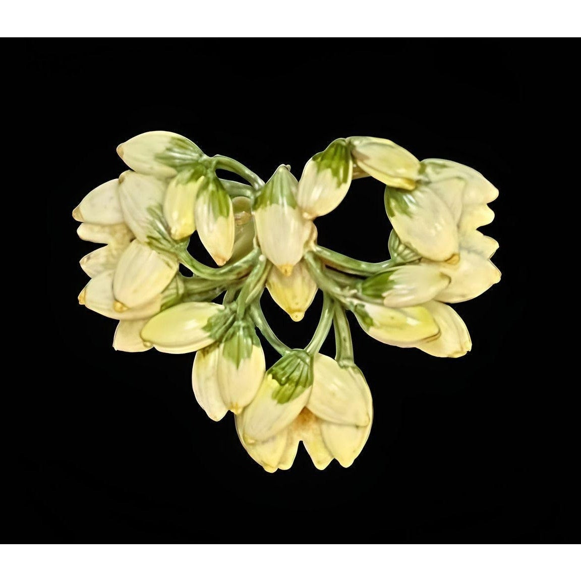 Vintage 1940s Sandor White & Green Enameled Floral Brooch Pin Signed