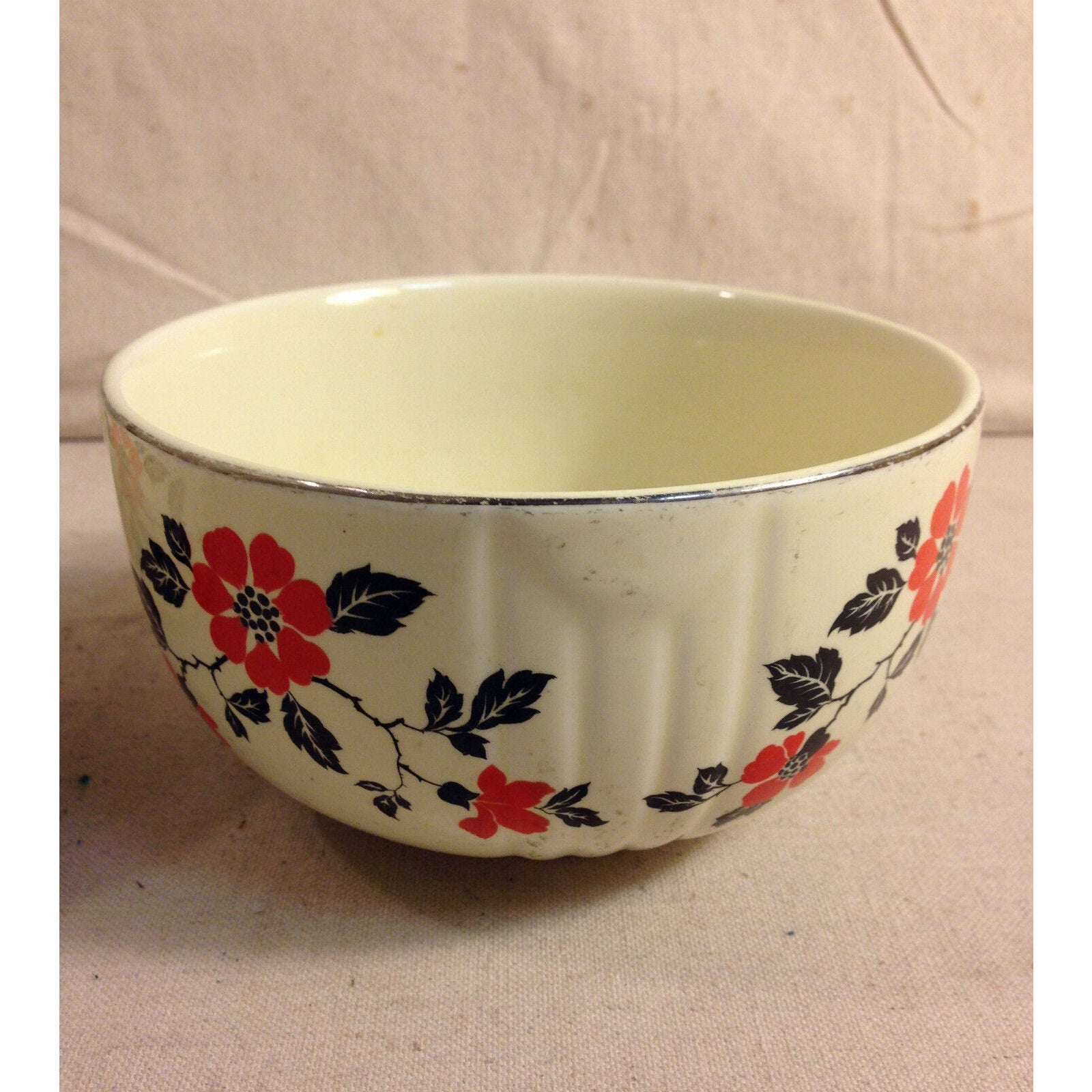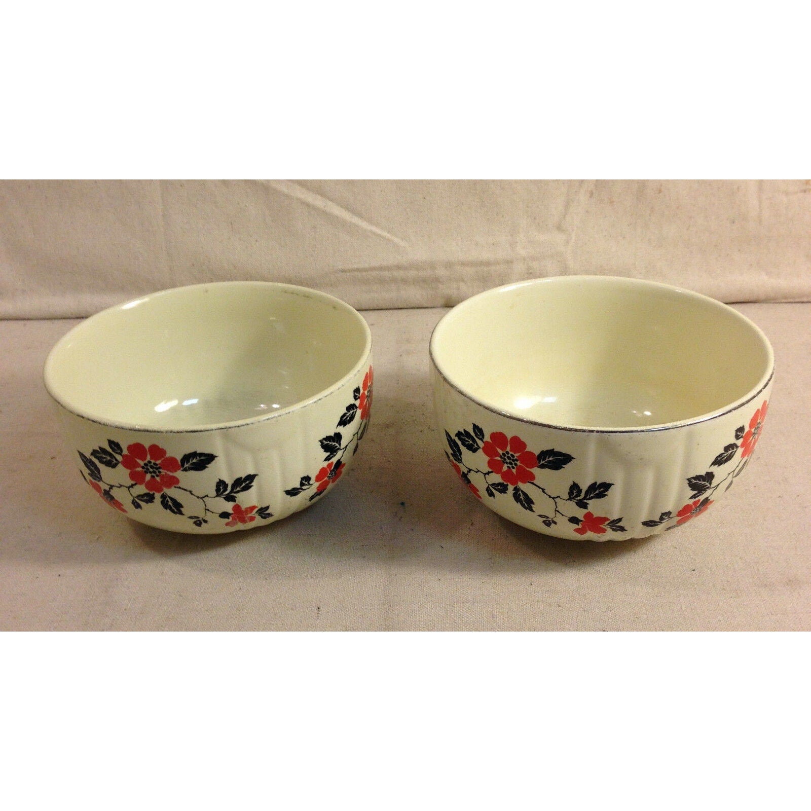 Brand: Hall’s Kitchen WareMade in: USAQuantity: Set of 2 bowlsSize: 6 1/4” diameter eachPattern: Red poppyCondition: Nice vintage condition; paint... Read more