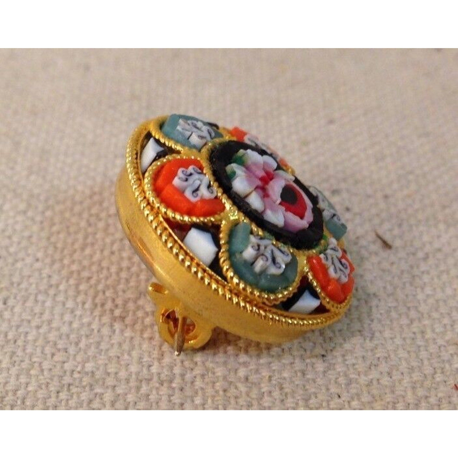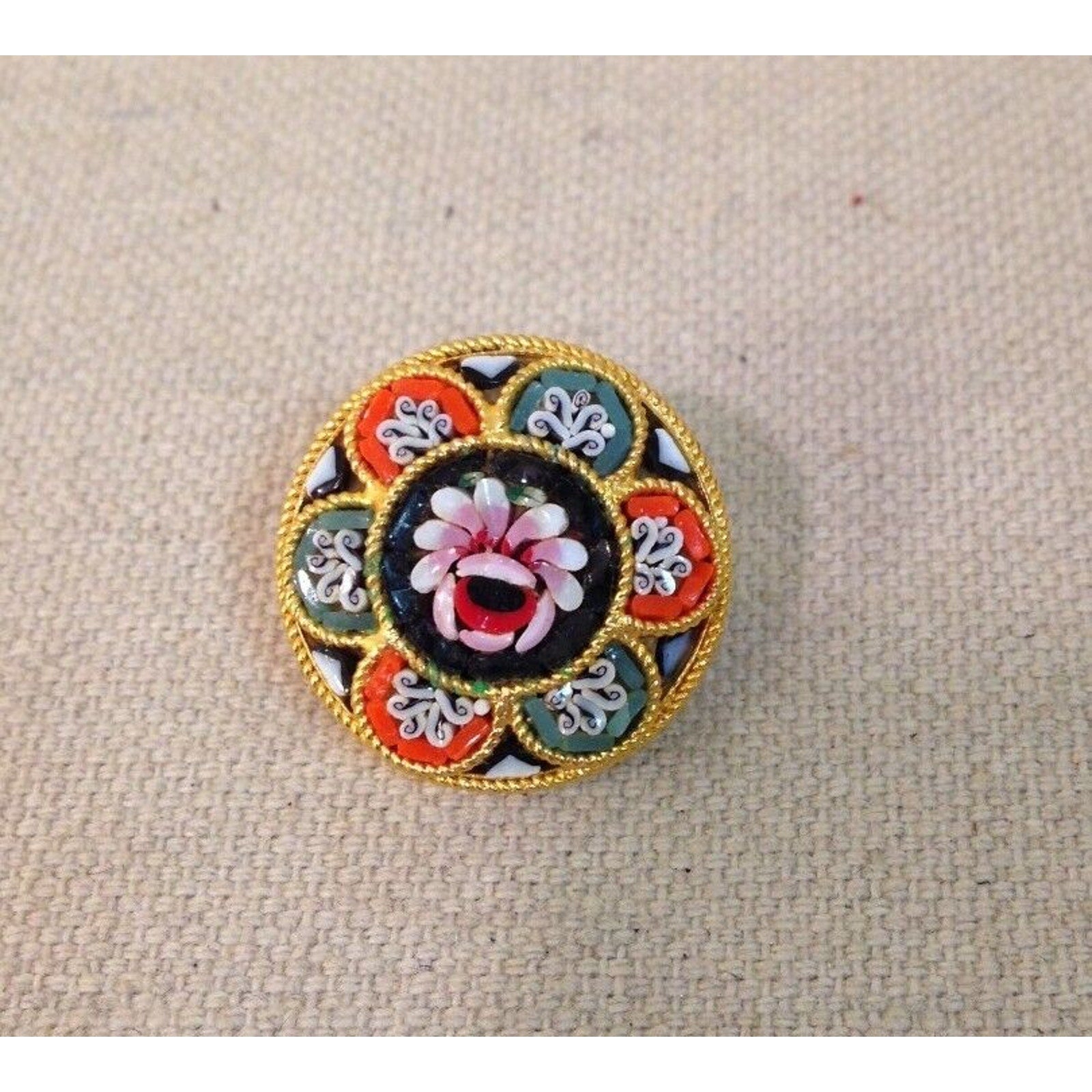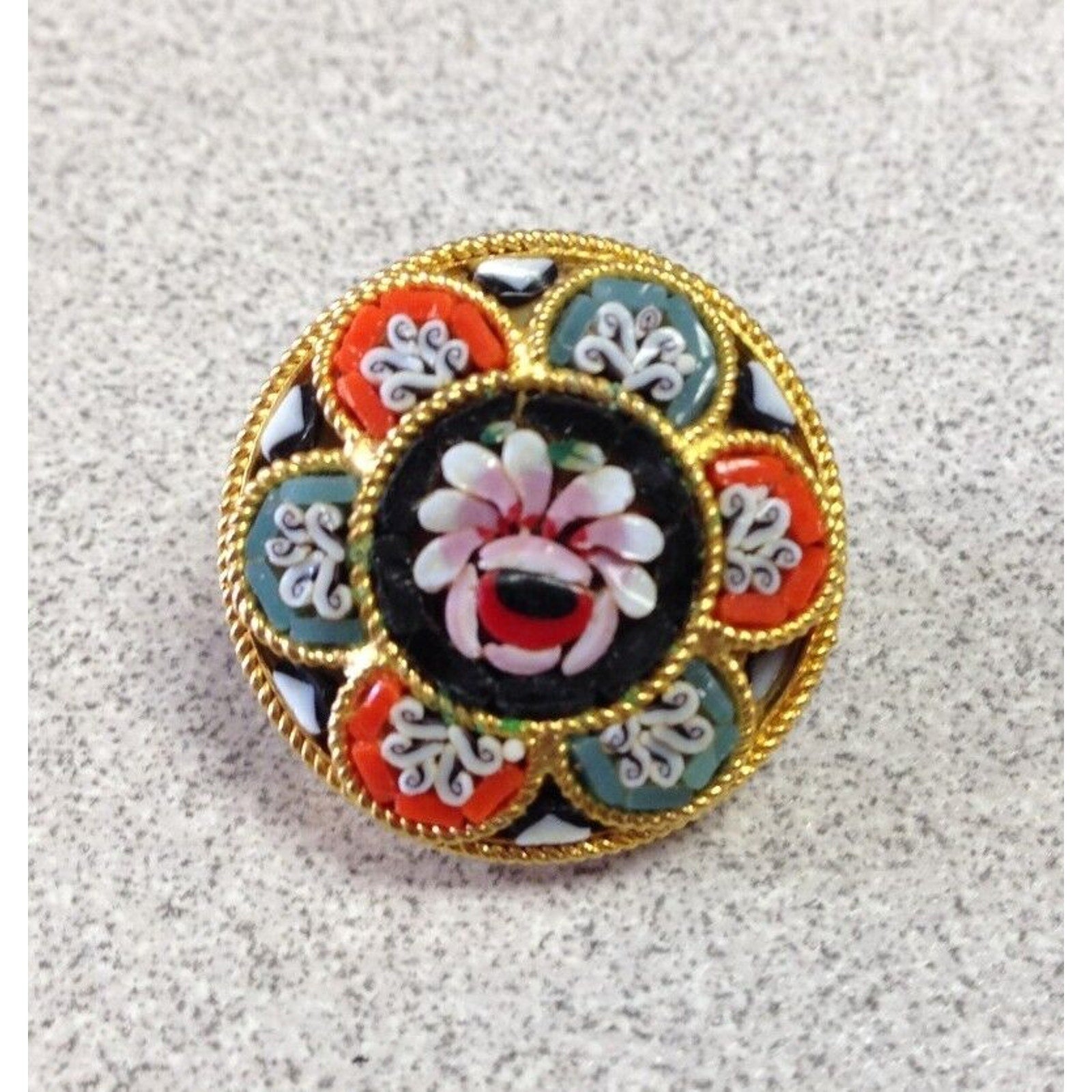 Vintage Italian Micro Mosaic Floral Round Pin / Brooch
