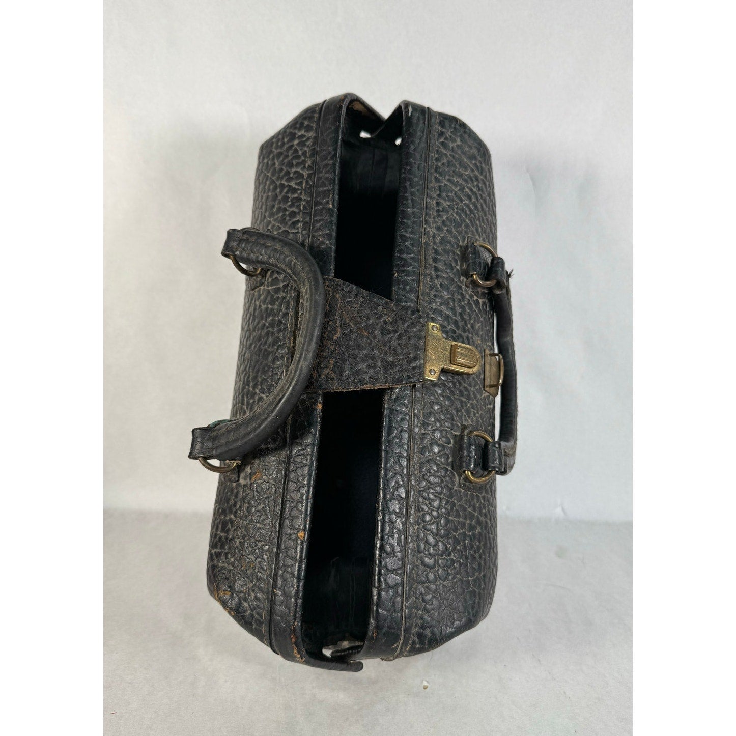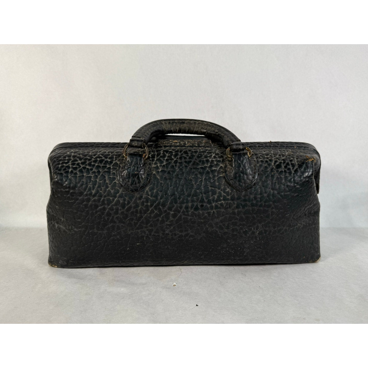 Classic vintage Lilly black pebbled leather doctor’s bag with a structured frame and sturdy handles. Monogrammed with some wear to... Read more