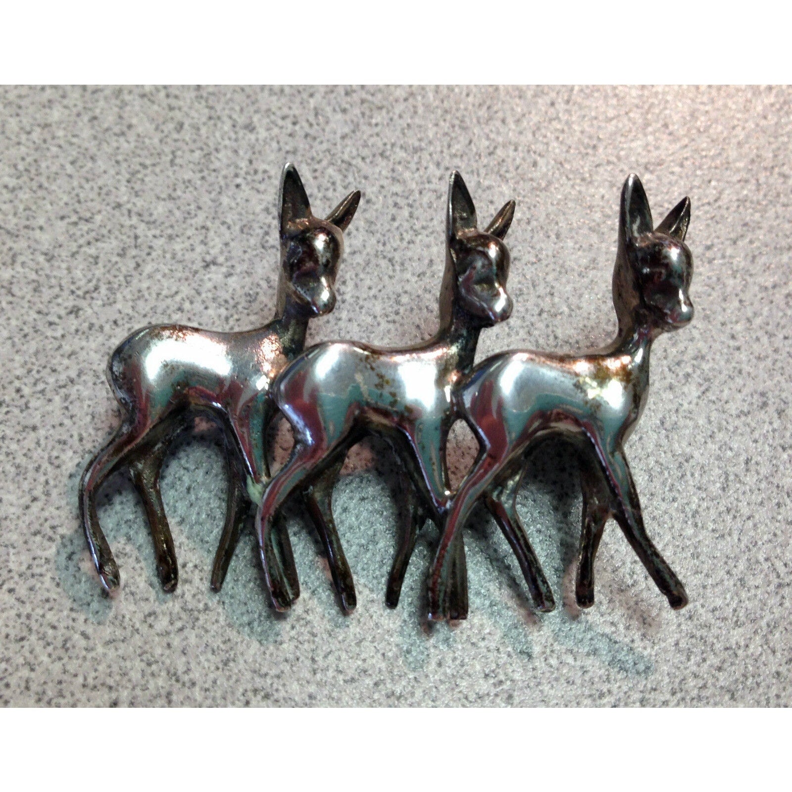 Vintage Sterling Silver "Three Deer in a Row" Brooch – 925 Pin
